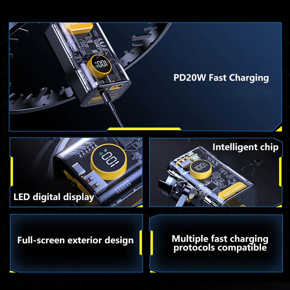 Cyberpunk Transparent 10,000 mAh Fast Charging Powerbank